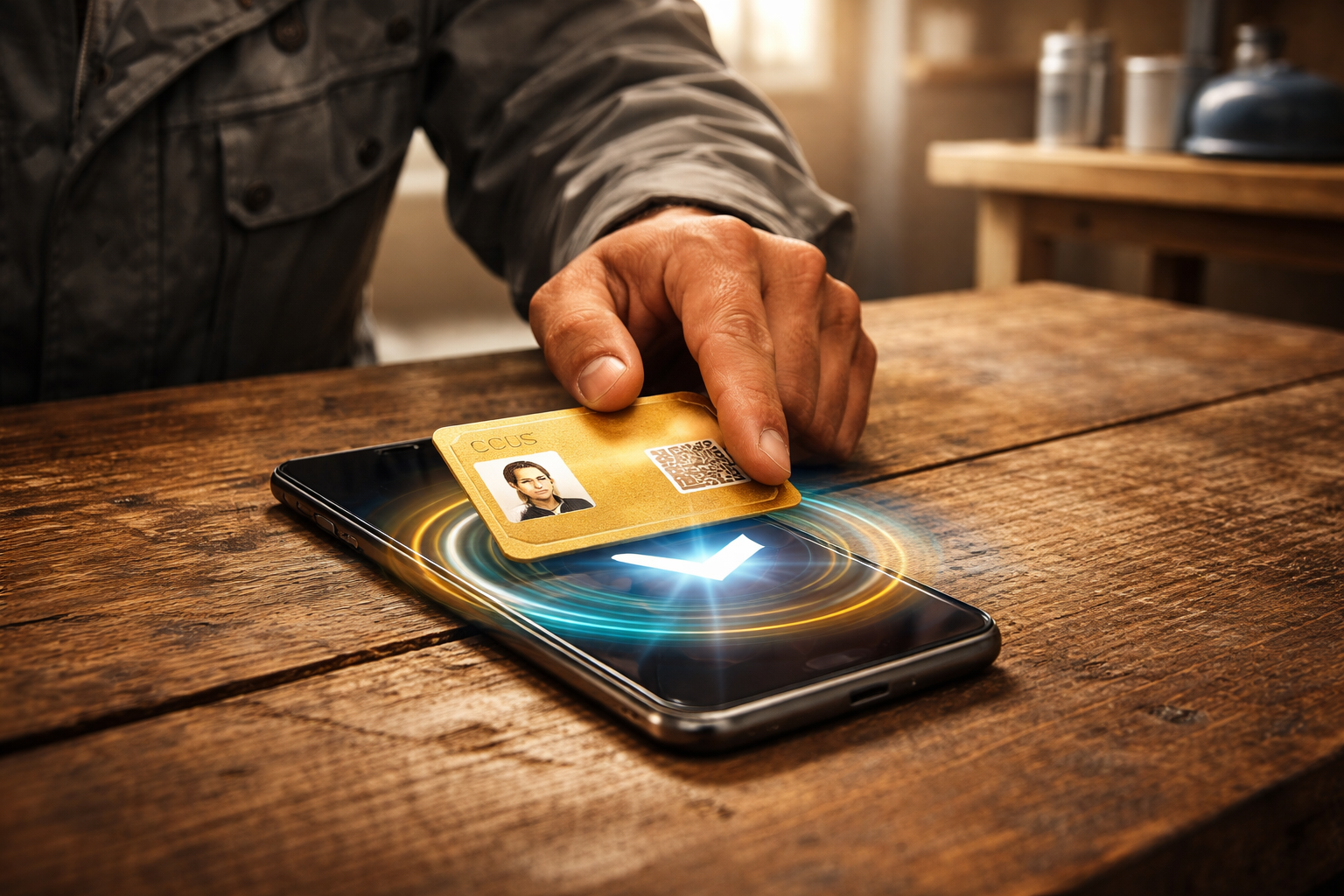 そこで登場したのがCCUSです!2026年現在、この面倒な証紙のやり取りは、カードのタッチと完全に連動できるようになりました。これを「完全電子化」と呼びます。